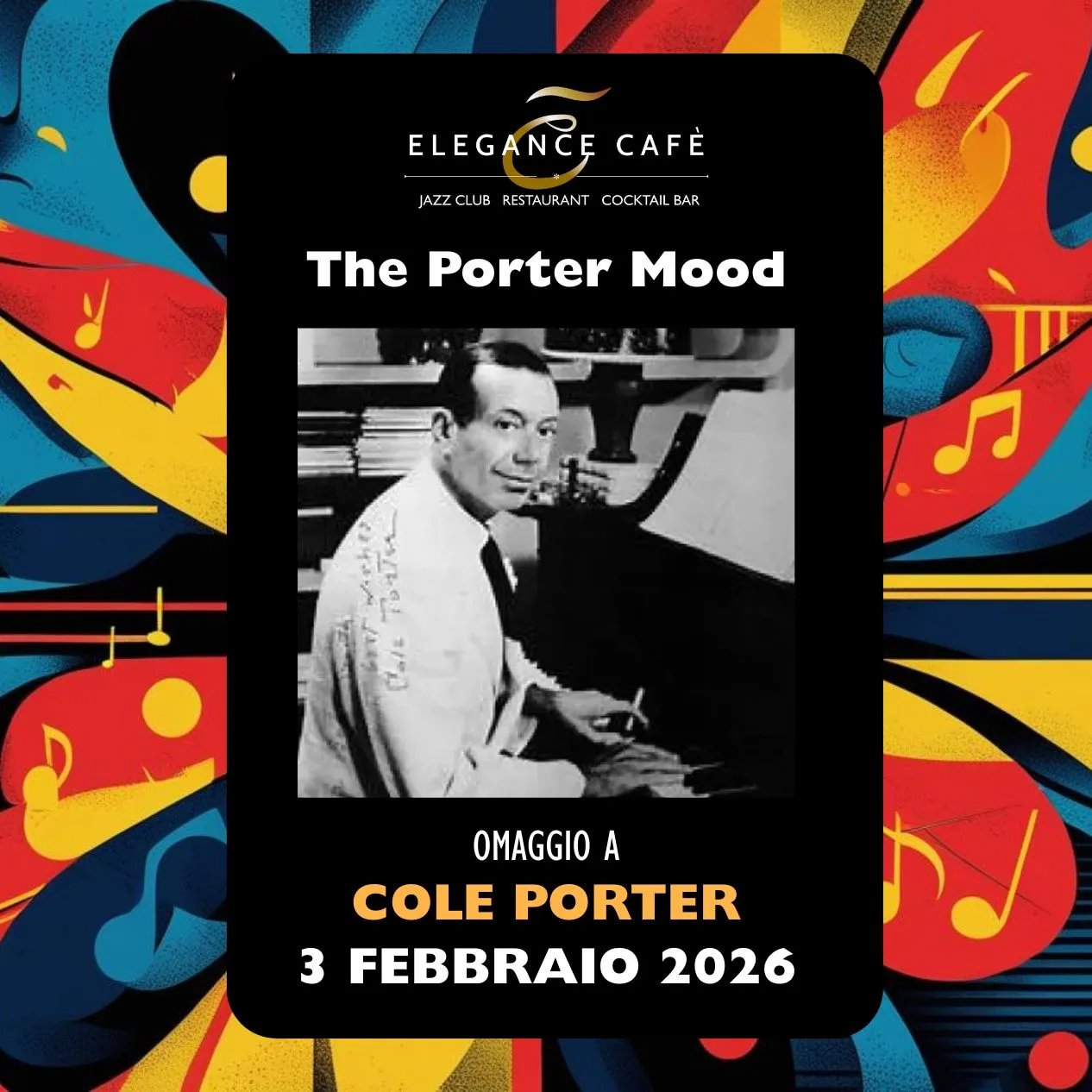 Se desideri ascoltare jazz dal vivo a Roma oggi e cercare un’esperienza raffinata in un jazz club Roma con cucina d’eccellenza, segna in agenda martedì 3 febbraio 2026. Sul palco dell’Elegance Cafè Jazz Club arriva The Porter Mood, progetto che rende omaggio alla modernità e all’ironia di Cole Porter. La serata rientra tra i migliori concerti jazz Roma e regala un’atmosfera intima dove la musica accompagna la cena e i cocktail.