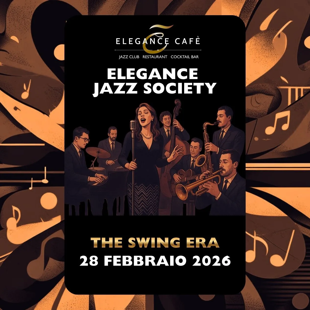 Jazz concerts in Rome, 28 February 2026: Elegance Jazz Society – The Swing Era at the Elegance Cafè.