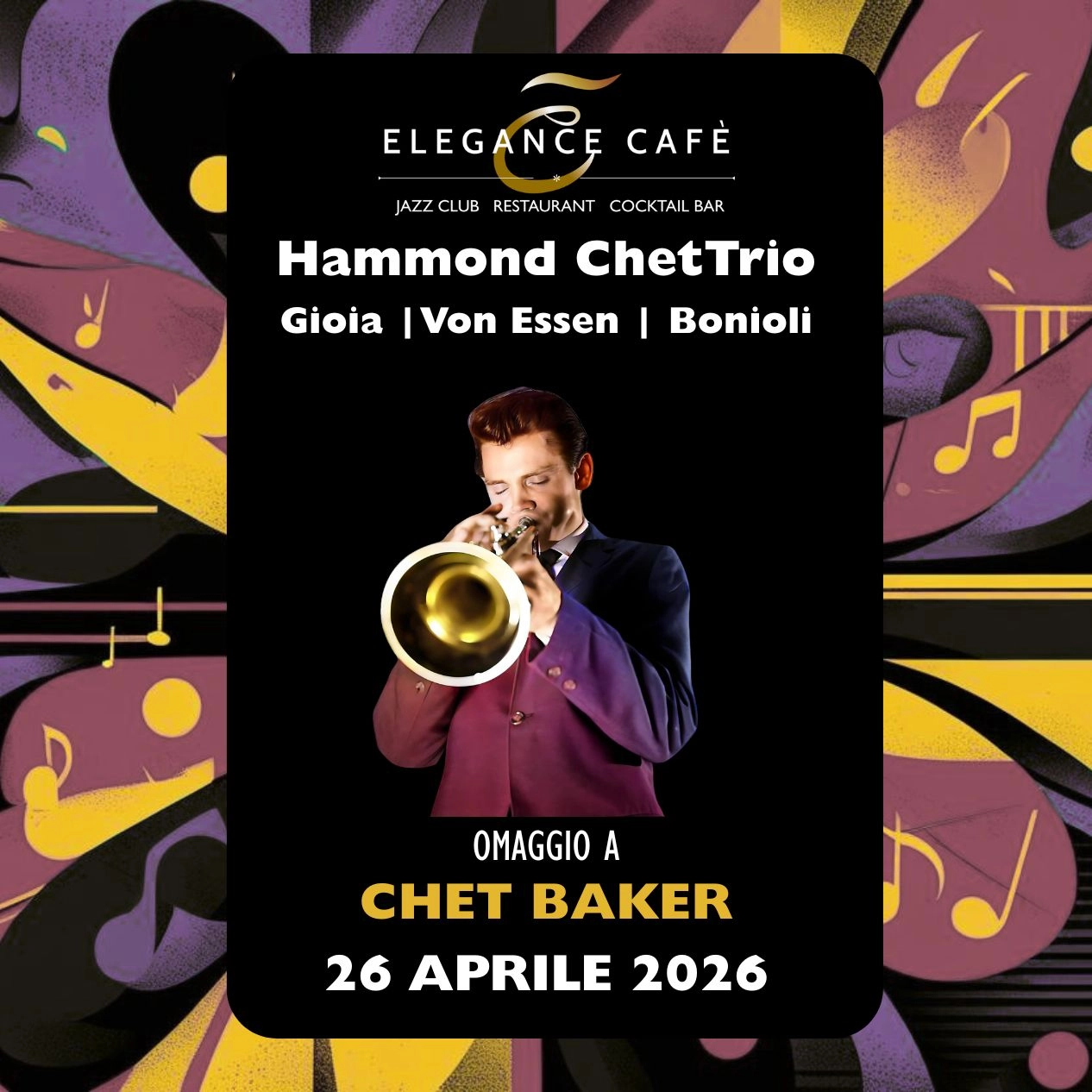 Jazz Rome April 26 2026: Hammond Chet Trio, Tribute to Chet Baker