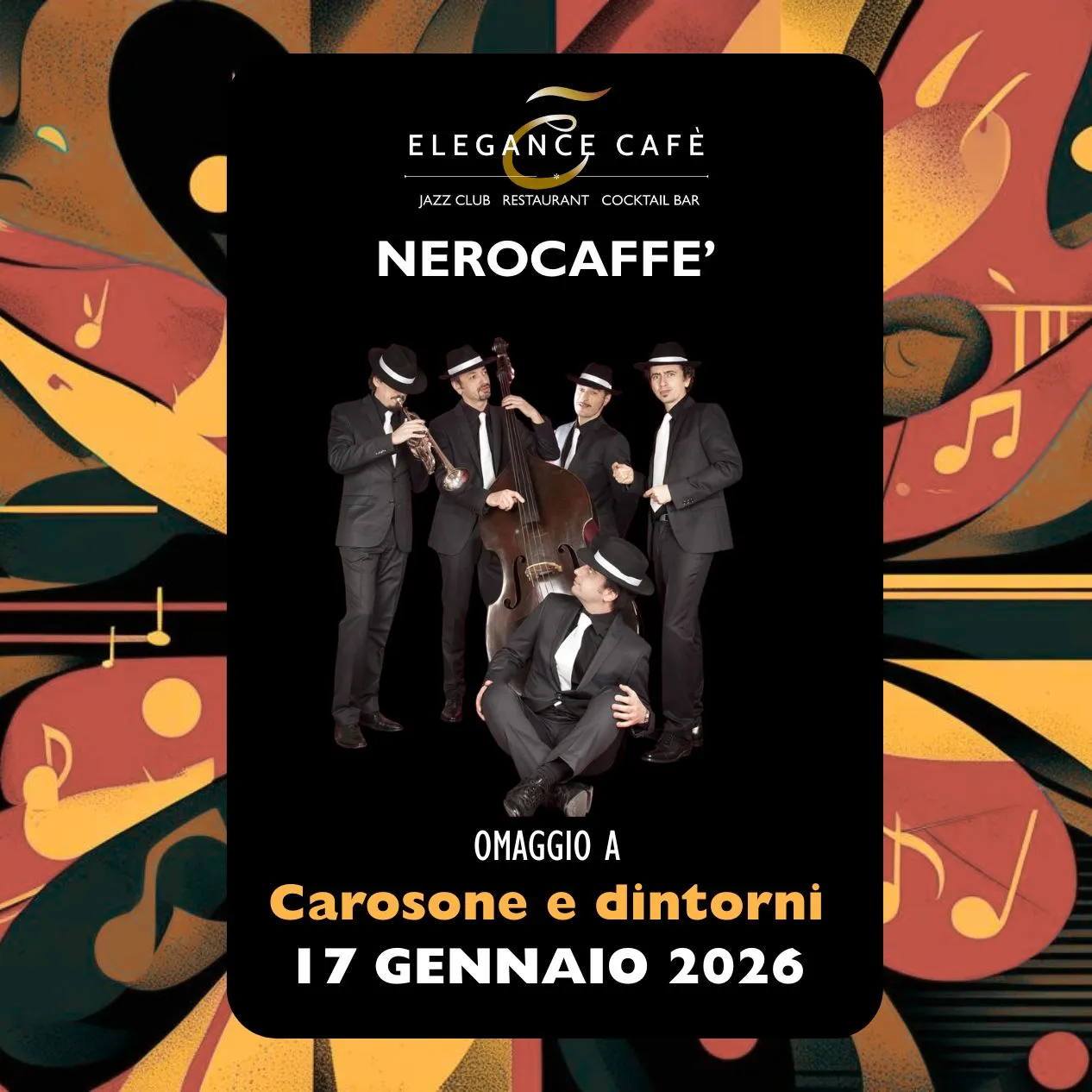 Live Music Rome January 17 2026 : NEROCAFFÈ “Carosone & Around” at Elegance Cafè Jazz Club Saturday, January 17, a new unmissable